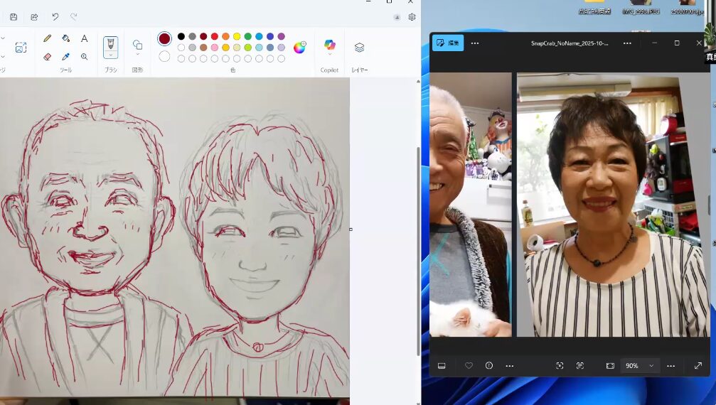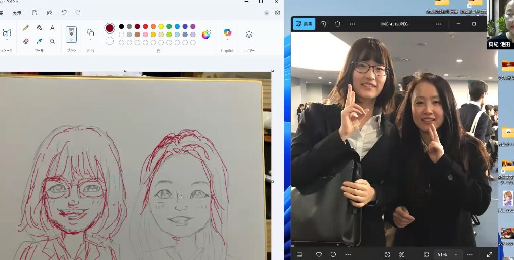 今日は似顔絵講座、Y子さん、K子さんのzoom教室でした。